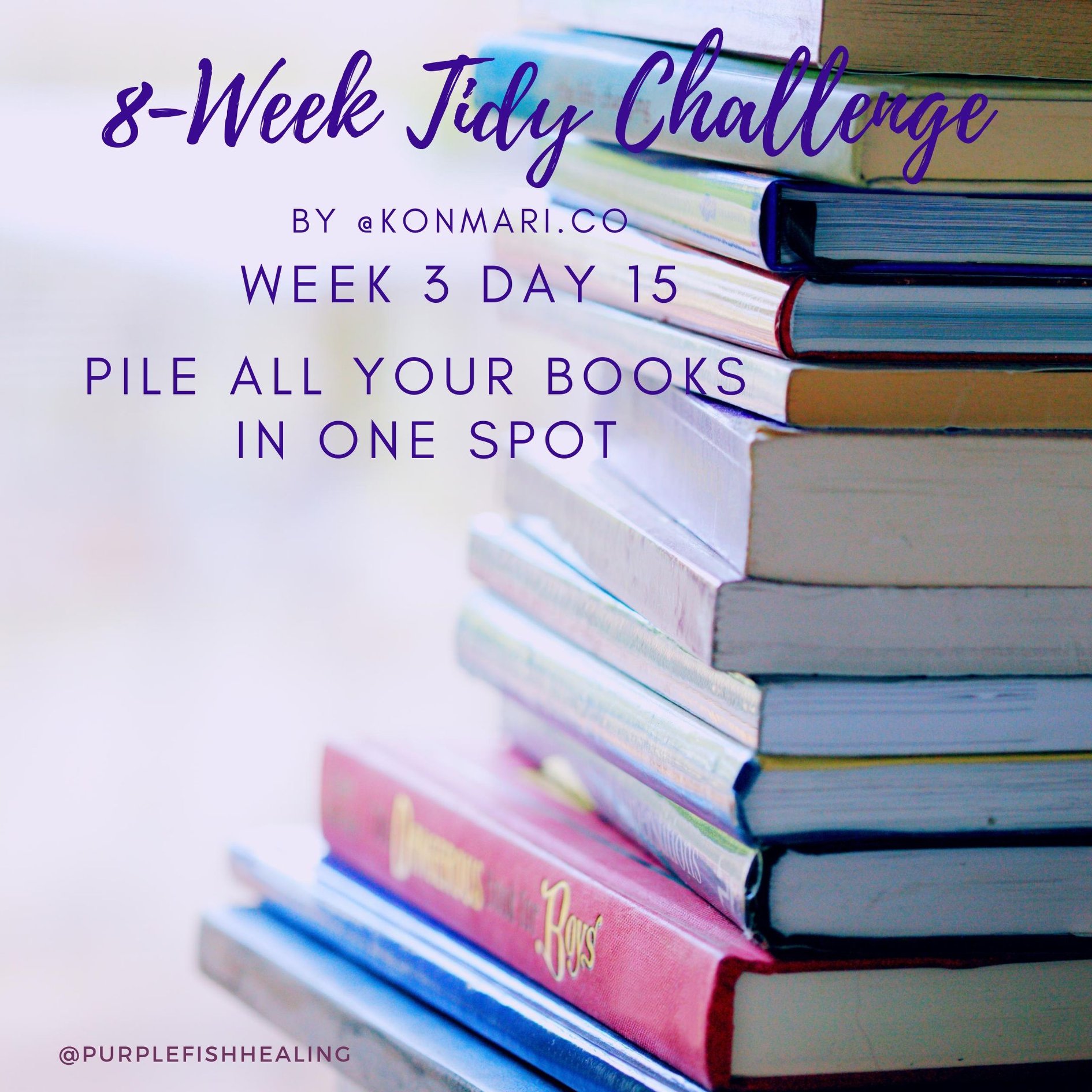 Gather ALL of your books from around the house and put them in one spot on a floor.